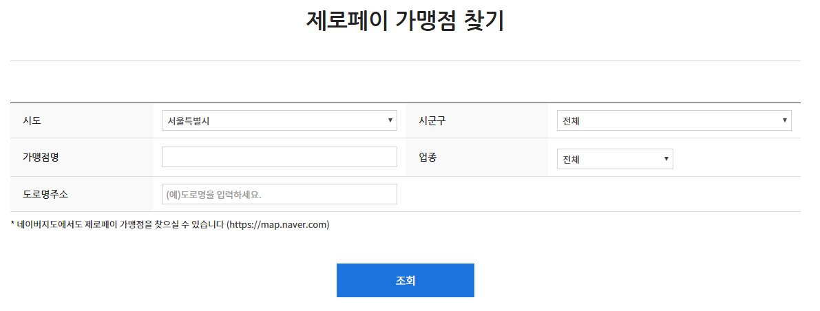 제로 페이 홈페이지에 들어가면 가맹점 이용안내 카테고리에 제로 페이 가맹점 찾기가 있습니다. 여기서 자신이 찾고자 하는 가맹점 이름을 검색하면 해당여부를 알 수가 있습니다.
