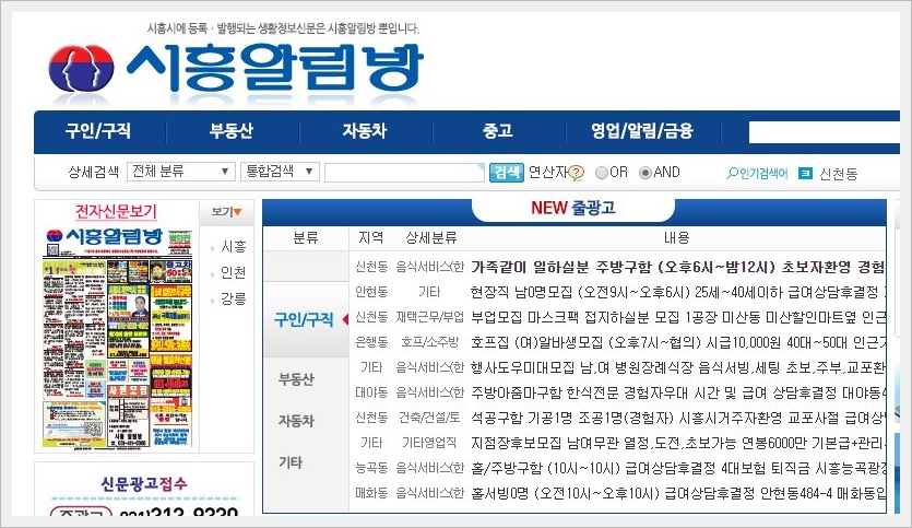 일반적으로 지역 내의 생활정보지 역할을 하는 벼룩시장과 교차로를 많이 알고 있습니다. 하지만 시흥에서 만큼은 시흥알림방을 활용하시는 분들이 많은데요. 그 이유 중 하나가 오랜 기간 동안 지역주민들로부터 사랑을 받아온 만큼 알짜 정보들이 많아서라고 합니다.