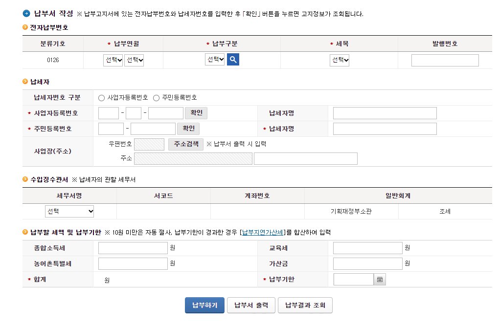 해당 페이지로 넘어가면 납부서 작성 페이지가 나오는 것을 알수 있다.