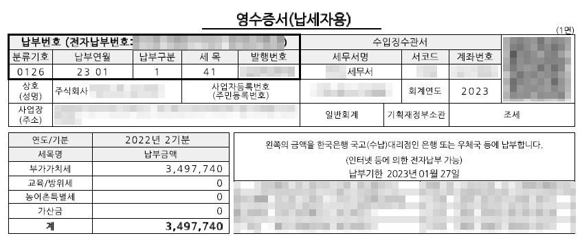 여기서 납부연월, 납부구분, 세목등을 작성하고 납세자 정보를 기재하자.