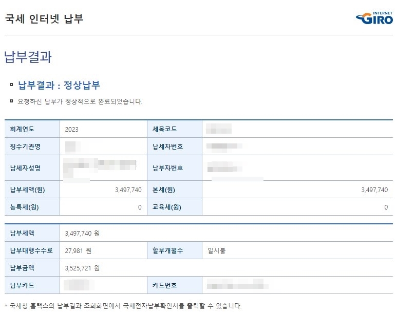 자신이 소지하고 있는 신용카드 중에서 국세납부 금액이 포인트 혹은 마일리지로 적립이 된다면 해당 카드로 결제를 하는것도 좋다.