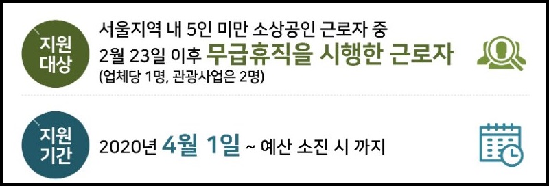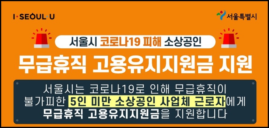 소상공인 지원금을 받을수 있는 지원대상은 다음과 같습니다. 코로나 19 사태로 인하여 무급휴직이 불가피한 5인 미만의 사업체입니다. 5인 이상의 근로자가 일하는 소상공 업체의 경우 무급휴직에 들어간 사람들의 경우 고용유지 지원금 형태로 서울시에서 지원을 하는 방법입니다.